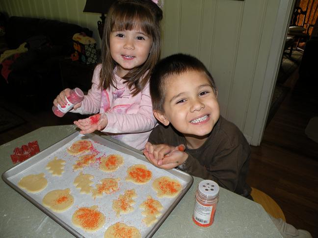 Now that the weather has finally cooled down and it's feeling like fall, it's the perfect time to make cookies with the kids. Carter wanted to make pumpkin cookies and picked the leaf cutter for Audrey.