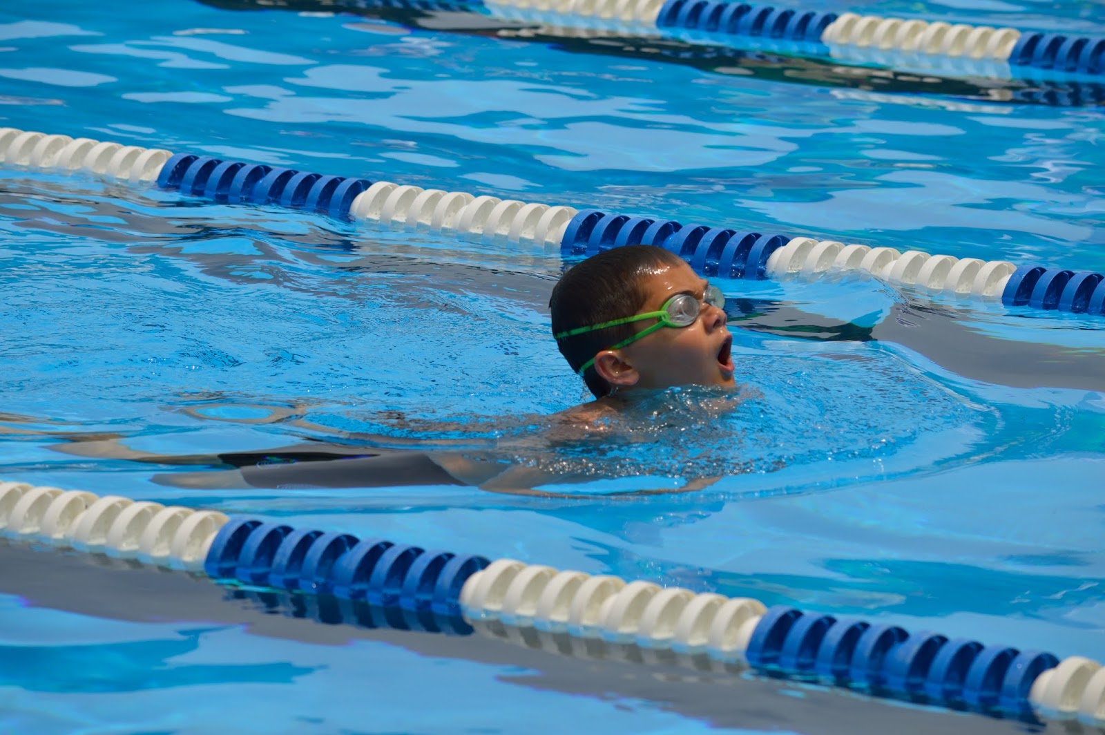 Now that he's 9 he had to swim a lot of 50s. It took a little getting used to but he did great.